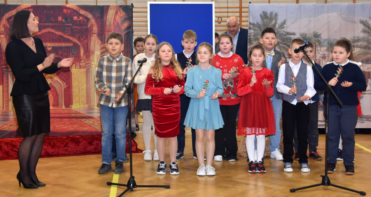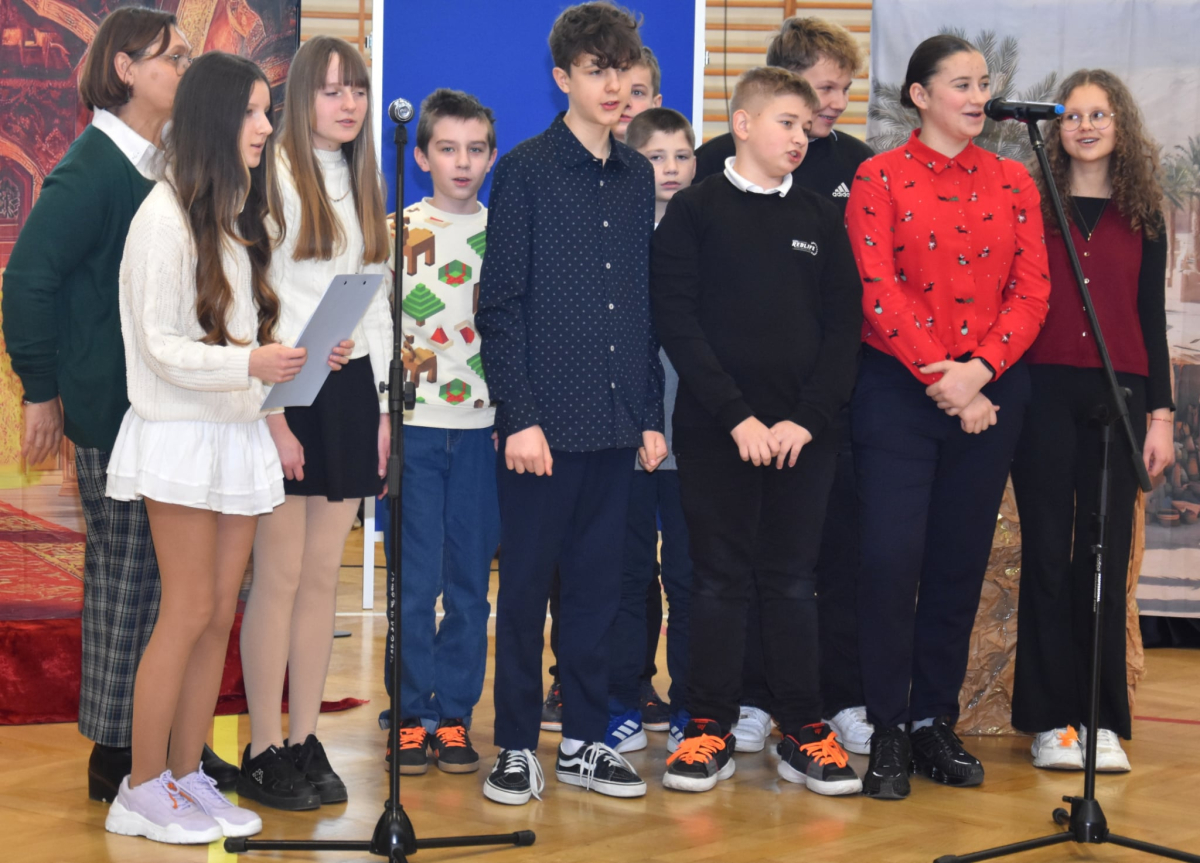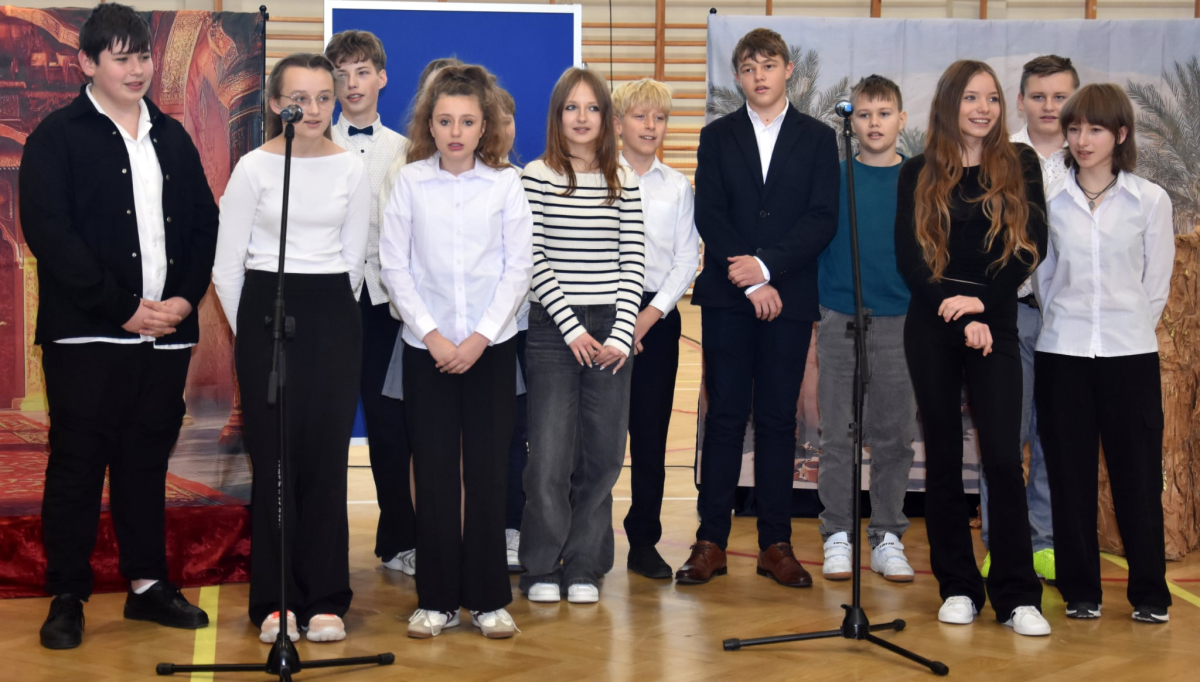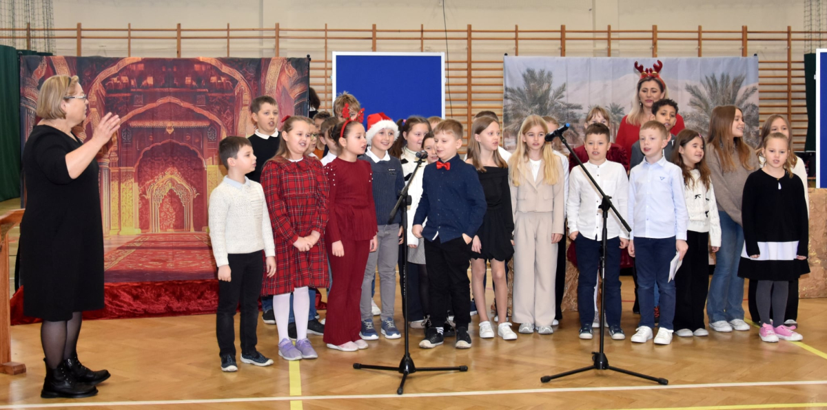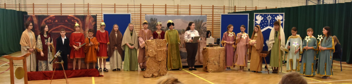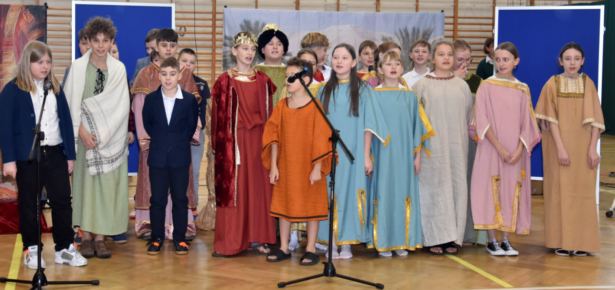 W przedświątecznej atmosferze w naszej szkole odbyły się wyjątkowe Jasełka, przygotowane przez uczniów z klasy V i VIII pod opieką Pani Joanny Bodzioch, Pani Krystyny Wilkosz i ks. Pawła Furdyny. Dzieci zaprezentowały legendę o Artabanie – czwartym mędrcu, której przesłanie przypomniało nam, że dobro, pomoc innym i wrażliwość na potrzeby drugiego człowieka są najpiękniejszym darem.