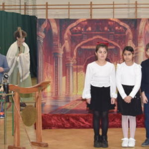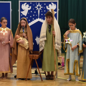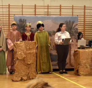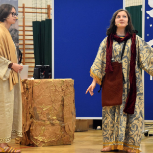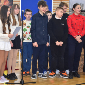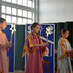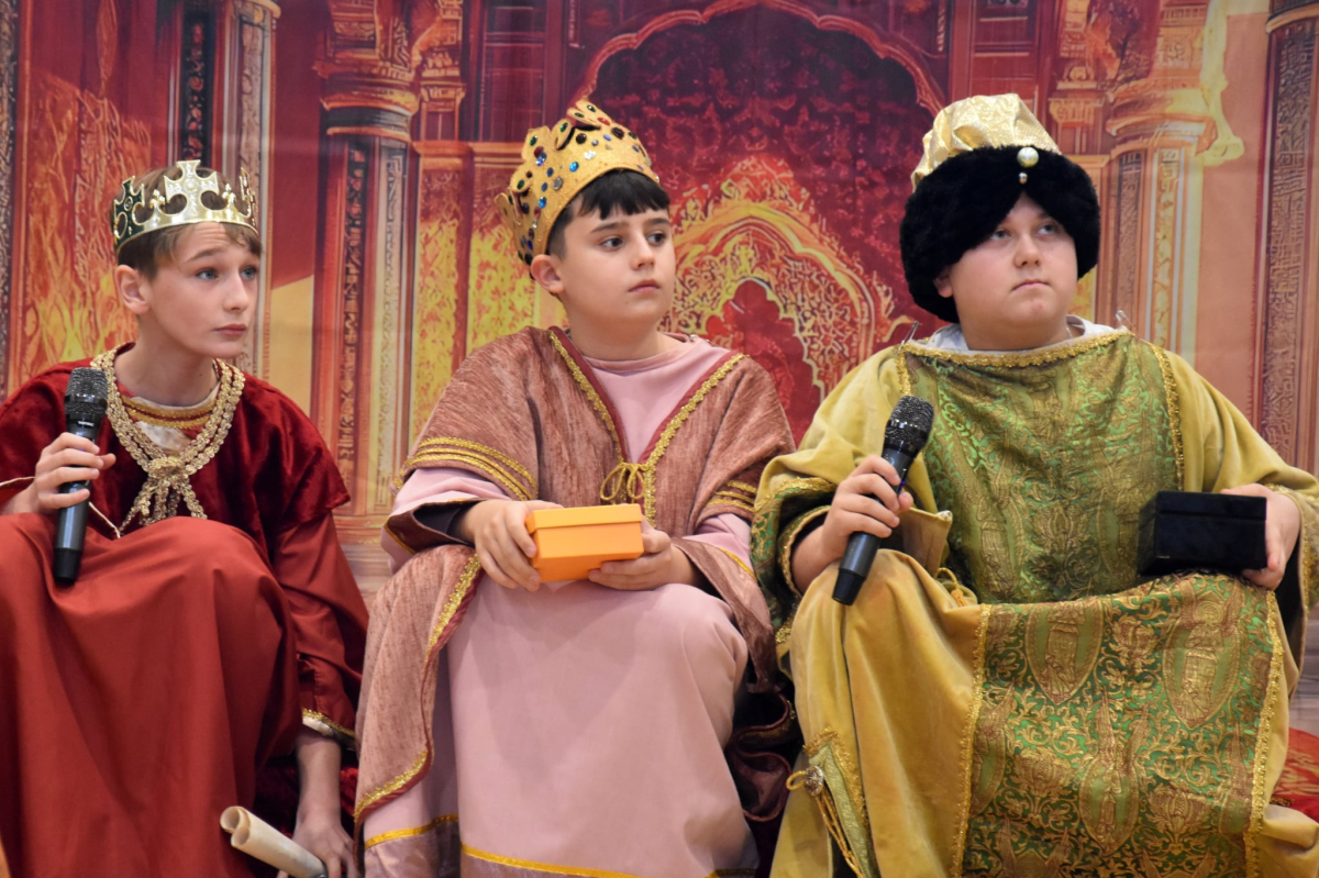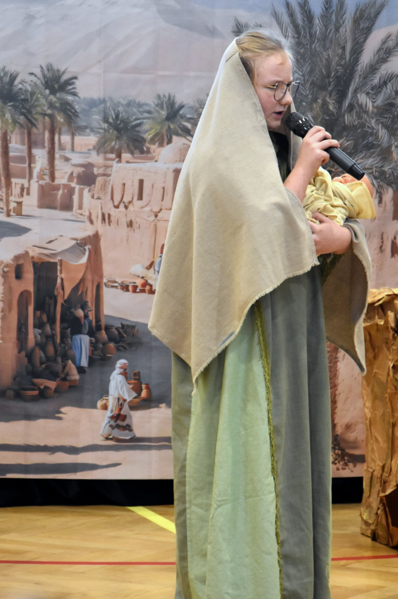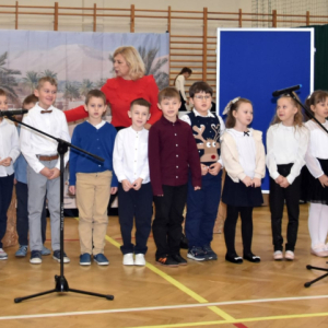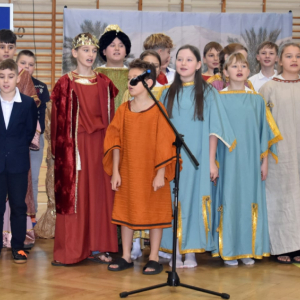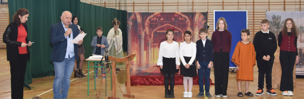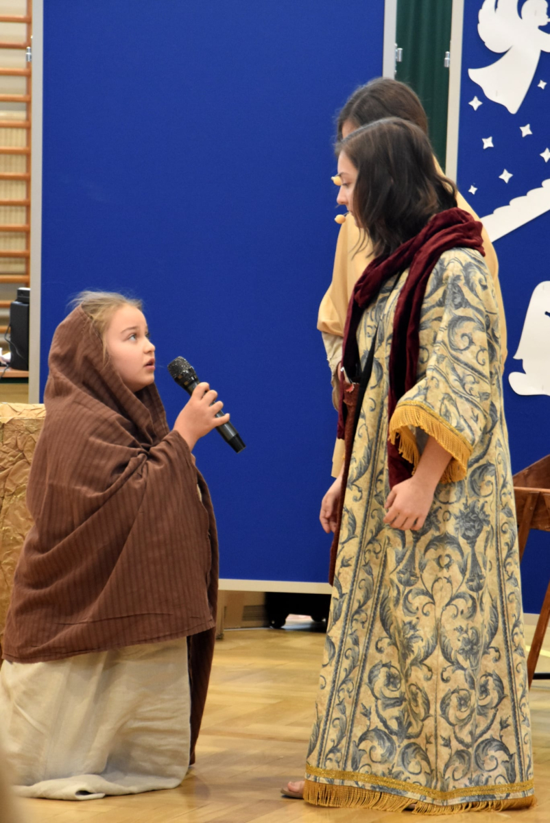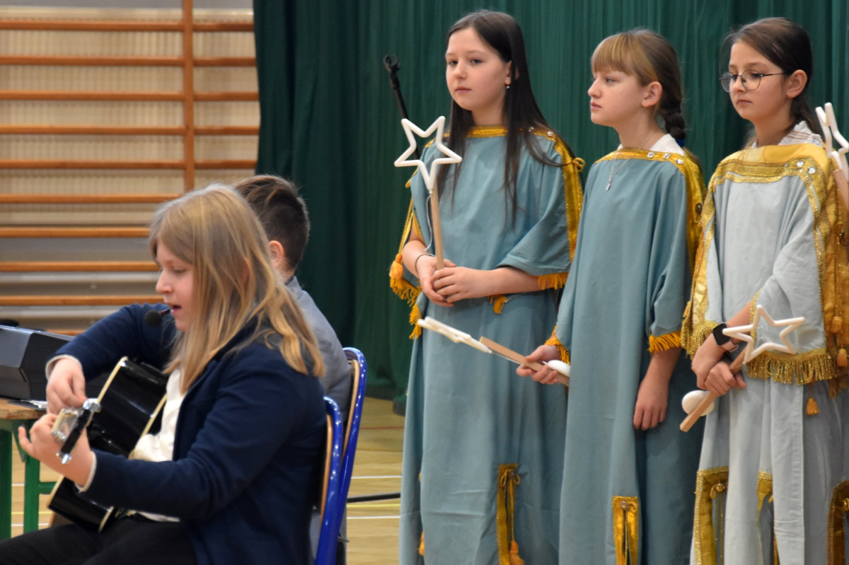 W przedświątecznej atmosferze w naszej szkole odbyły się wyjątkowe Jasełka, przygotowane przez uczniów z klasy V i VIII pod opieką Pani Joanny Bodzioch, Pani Krystyny Wilkosz i ks. Pawła Furdyny. Dzieci zaprezentowały legendę o Artabanie – czwartym mędrcu, której przesłanie przypomniało nam, że dobro, pomoc innym i wrażliwość na potrzeby drugiego człowieka są najpiękniejszym darem.