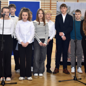 Szczególnym momentem akademii było także wręczenie nagród w konkursie na jesienny wystrój klasy. Na środek sali zostali zaproszeni skarbnicy klas, których sale lekcyjne zostały wyróżnione za kreatywność i estetykę wykonania. Reprezentując swoje zespoły klasowe, uczniowie z dumą odebrali koperty z nagrodami finansowymi, które zostaną przeznaczone na realizację klasowych inicjatyw, m.in. wyjazdy, wspólne przedsięwzięcia czy inne potrzeby związane z życiem klasy. Nagrody zostały ufundowane przez Radę Rodziców, której składamy serdeczne podziękowania za hojność, zaangażowanie oraz nieustanne wspieranie szkolnych działań i inicjatyw uczniowskich. Dzięki takiej współpracy możliwe jest tworzenie przyjaznej, twórczej i motywującej przestrzeni dla dzieci i młodzieży.