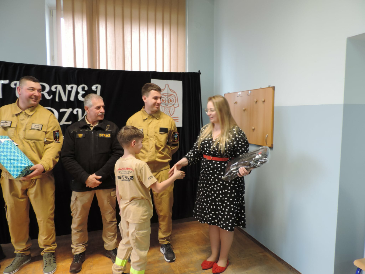 Istotną rolę w przygotowaniu i przebiegu konkursu odegrali druhowie z OSP Borzęcin Górny. Strażacy nie tylko zasiedli w jury, ale również przeprowadzili dogrywkę oraz profesjonalny pokaz pierwszej pomocy, podnosząc rangę wydarzenia i nadając mu praktyczny wymiar edukacyjny. Nad prawidłowym przebiegiem eliminacji czuwał Komendant Gminny Grzegorz Małek oraz Przewodnicząca Rady Rodziców Joanna Krzanowski.