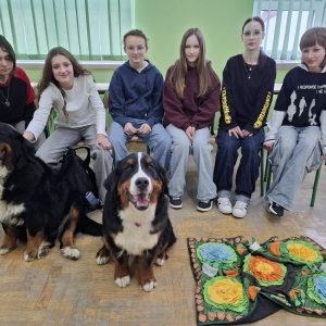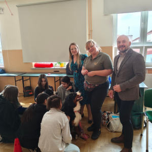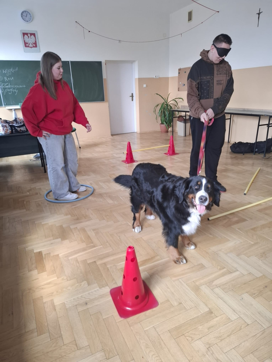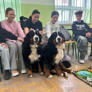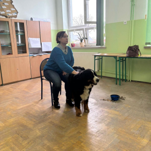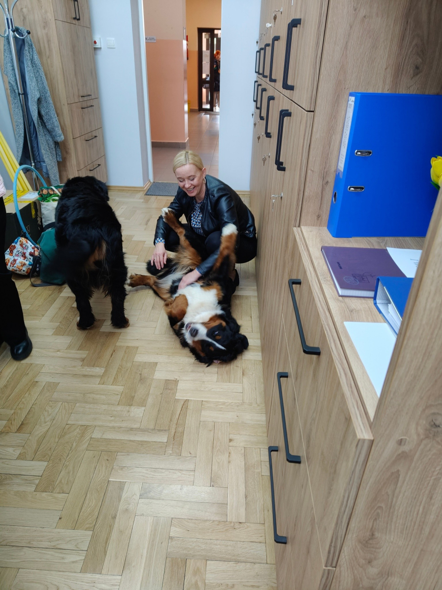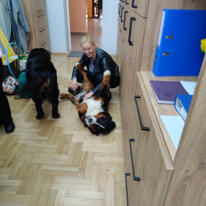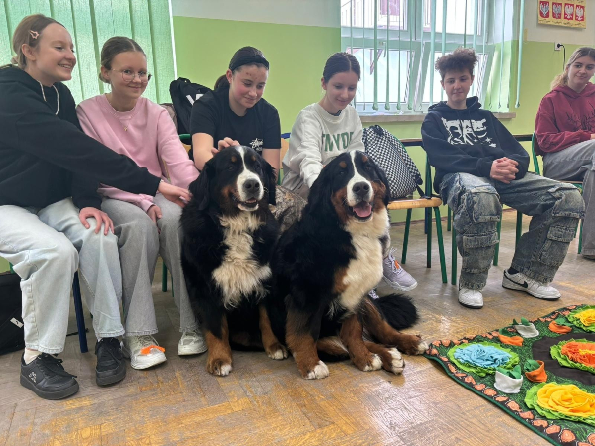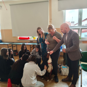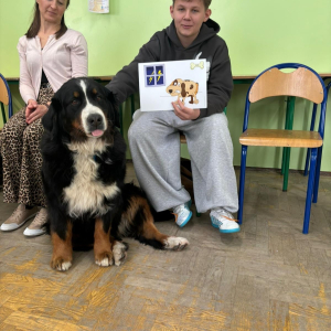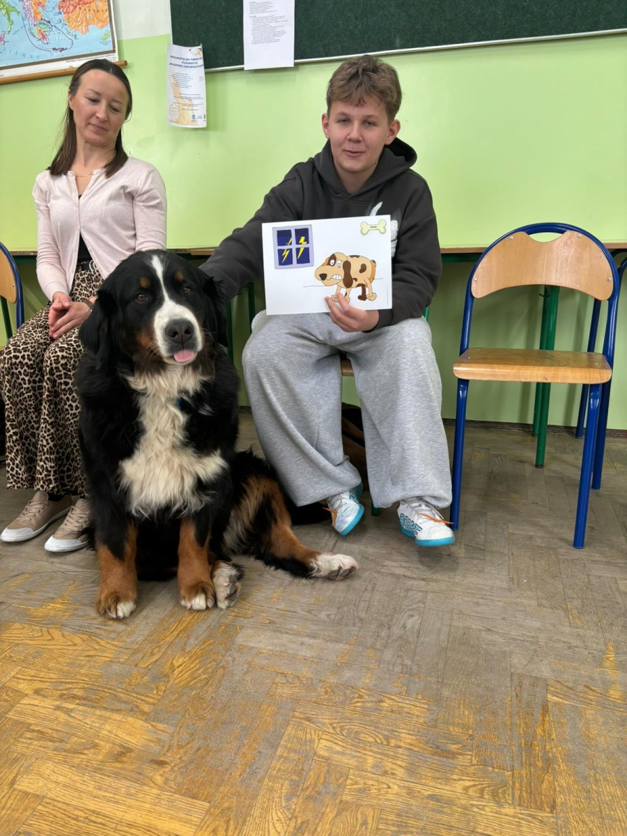 Zajęcia poprowadziła niezwykła osoba - Pani Anna Kozłowska - Psie gadu gadu - pedagog, dogoterapeuta i behawiorysta w jednym. Swoją pasją i zaangażowaniem zaraziła młodzież, która nie tylko zdobyła ważną wiedzę na temat profilaktyki uzależnień, ale również miała okazję poznać bliżej zawód dogoterapeuty.