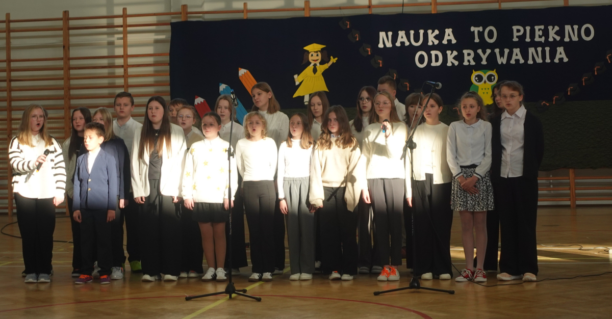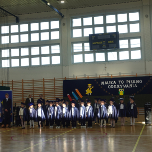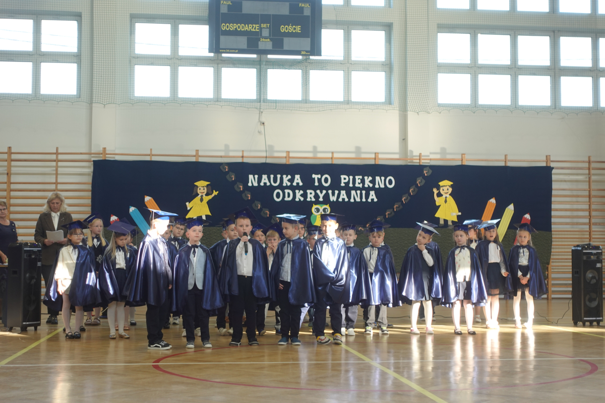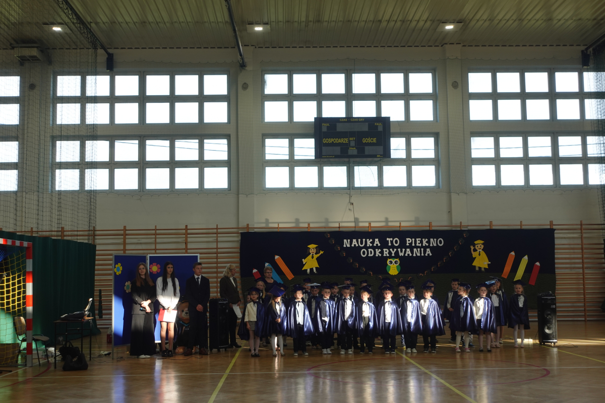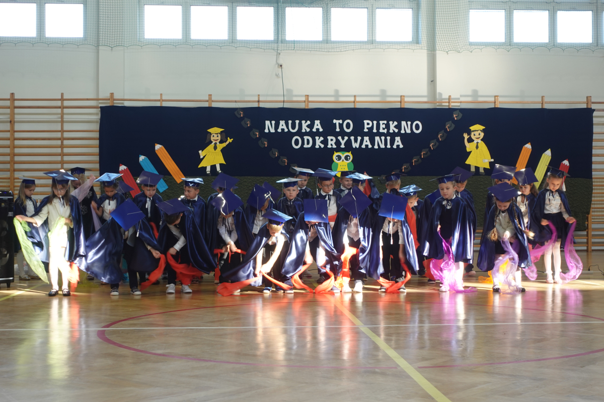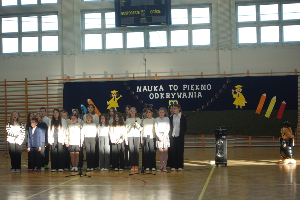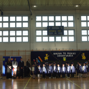 W czwartek, 16 października 2025 roku, w naszej szkole odbyła się jedna z najważniejszych uroczystości w życiu każdego ucznia – Ślubowanie klas pierwszych. To wyjątkowy dzień, w którym najmłodsi uczniowie oficjalnie zostali przyjęci do grona społeczności szkolnej. Uroczystość ta połączona była z Dniem Edukacji Narodowej. Po odśpiewaniu hymnu uczniowie z klas starszych przedstawili krótką inscenizację słowno-muzyczną.