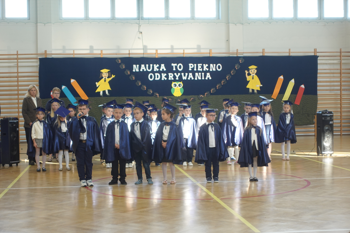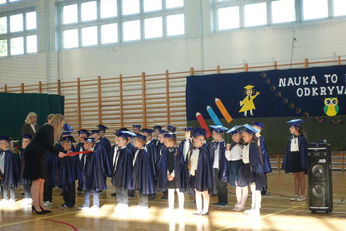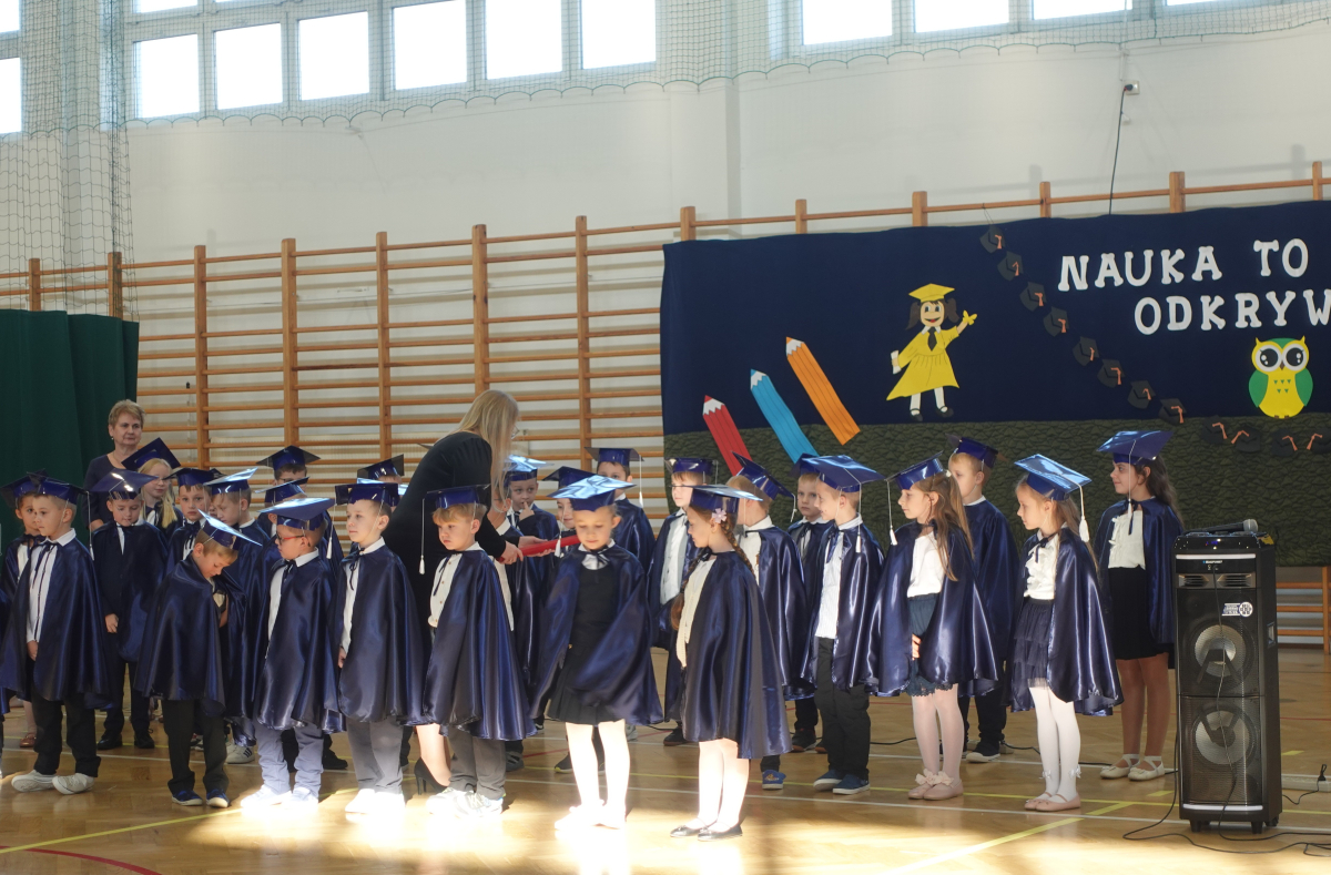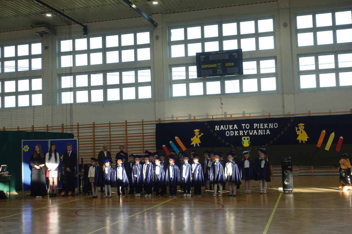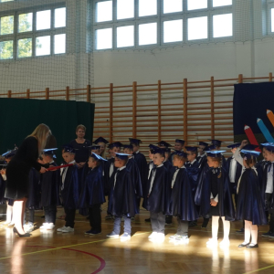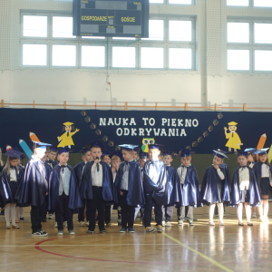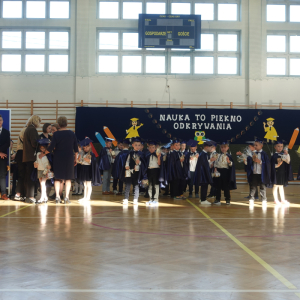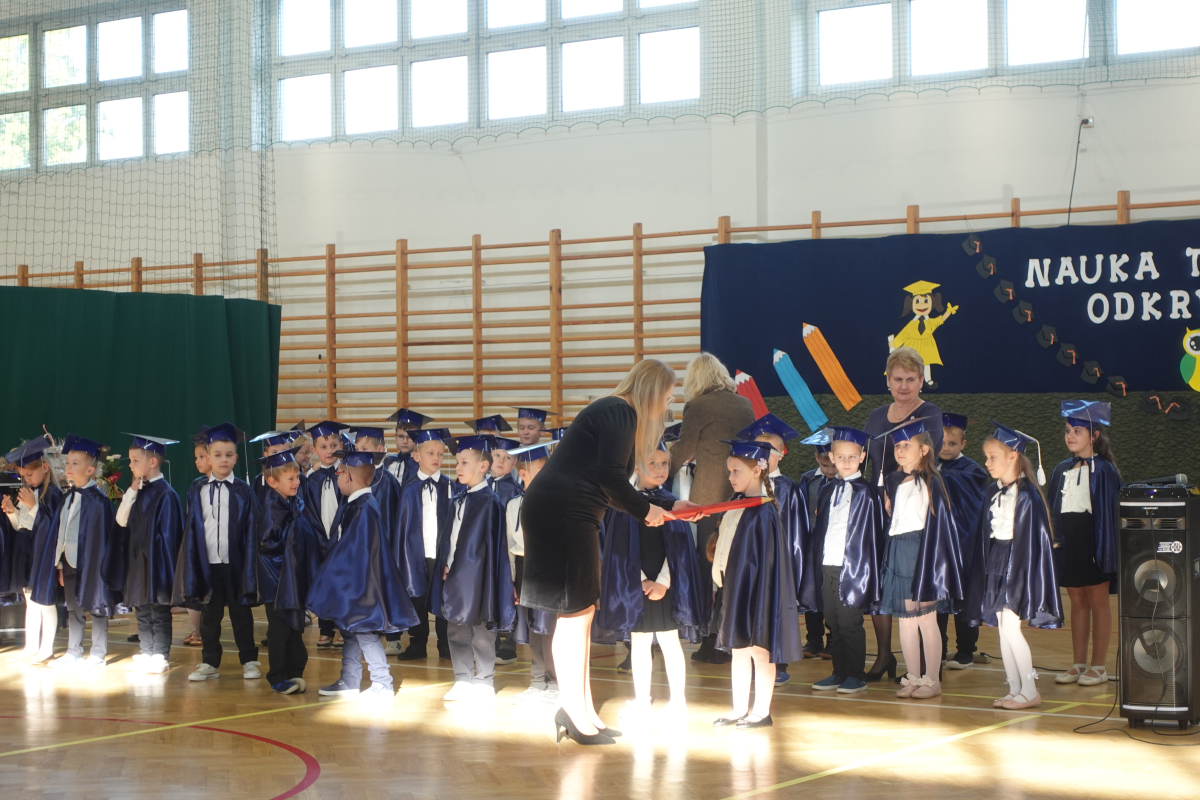 W czwartek, 16 października 2025 roku, w naszej szkole odbyła się jedna z najważniejszych uroczystości w życiu każdego ucznia – Ślubowanie klas pierwszych. To wyjątkowy dzień, w którym najmłodsi uczniowie oficjalnie zostali przyjęci do grona społeczności szkolnej. Uroczystość ta połączona była z Dniem Edukacji Narodowej. Po odśpiewaniu hymnu uczniowie z klas starszych przedstawili krótką inscenizację słowno-muzyczną.