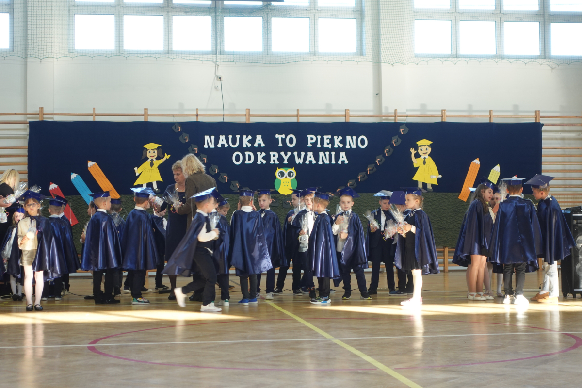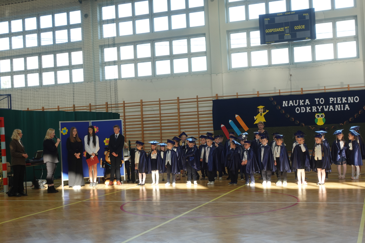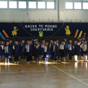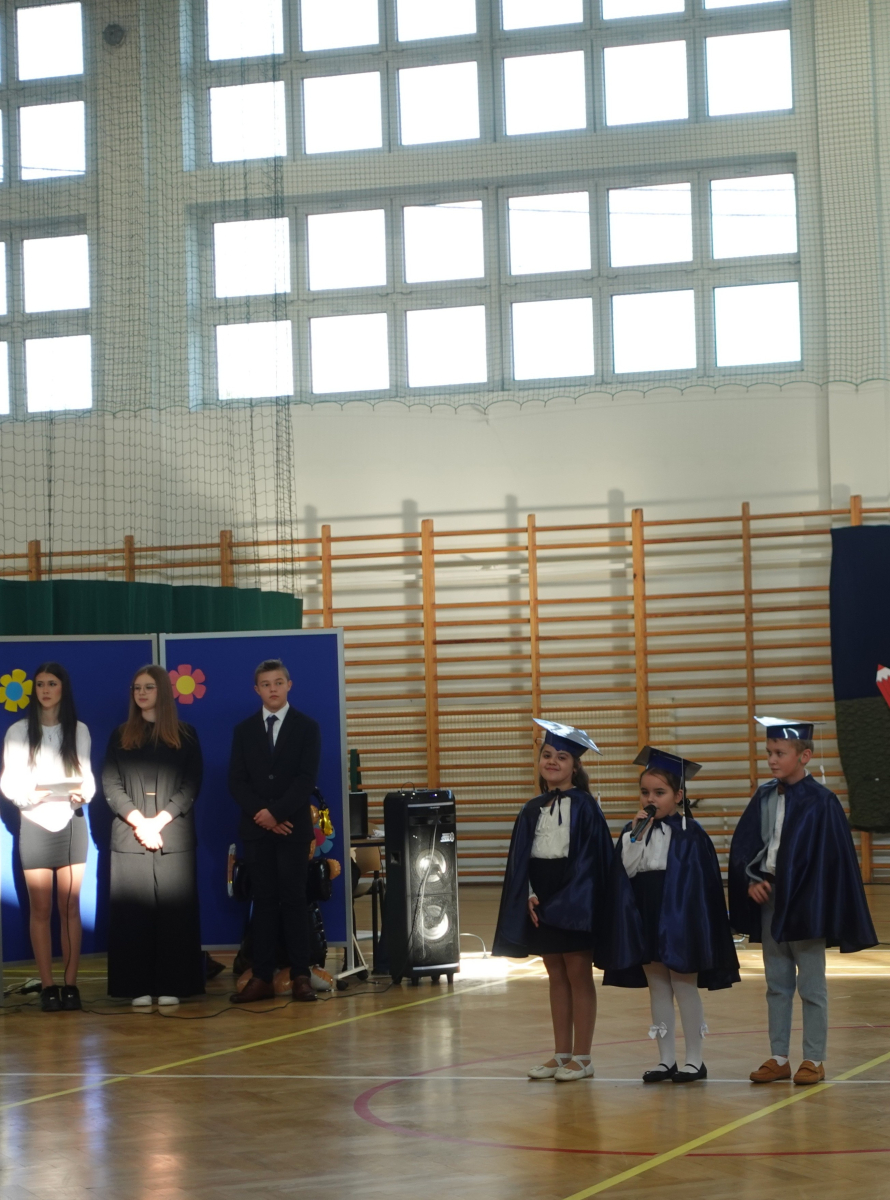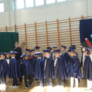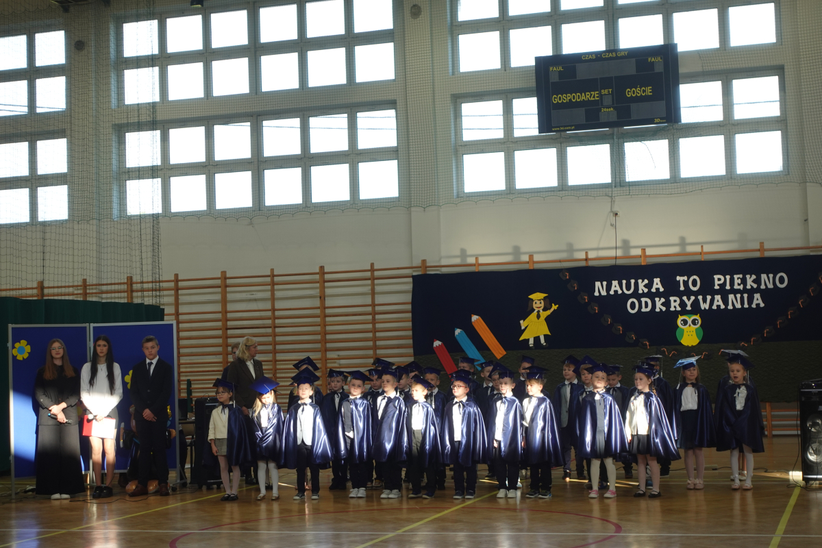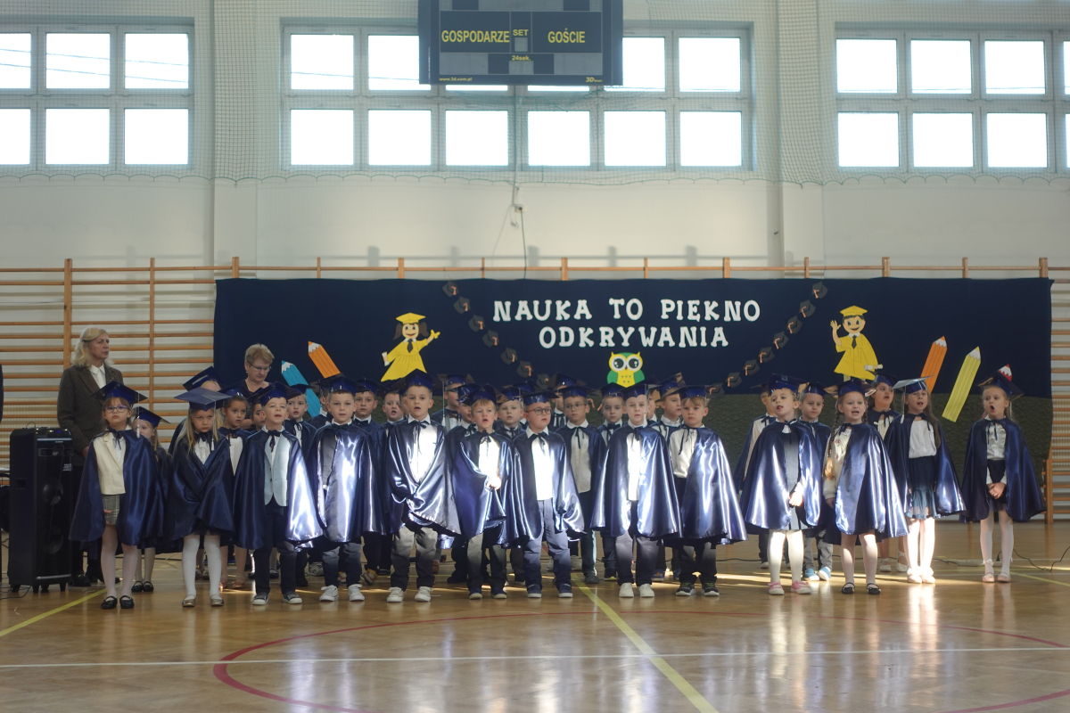 W czwartek, 16 października 2025 roku, w naszej szkole odbyła się jedna z najważniejszych uroczystości w życiu każdego ucznia – Ślubowanie klas pierwszych. To wyjątkowy dzień, w którym najmłodsi uczniowie oficjalnie zostali przyjęci do grona społeczności szkolnej. Uroczystość ta połączona była z Dniem Edukacji Narodowej. Po odśpiewaniu hymnu uczniowie z klas starszych przedstawili krótką inscenizację słowno-muzyczną.