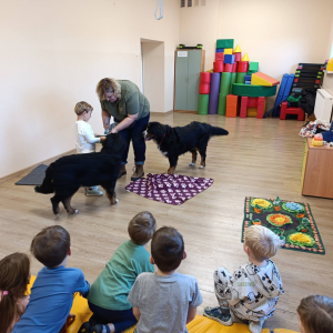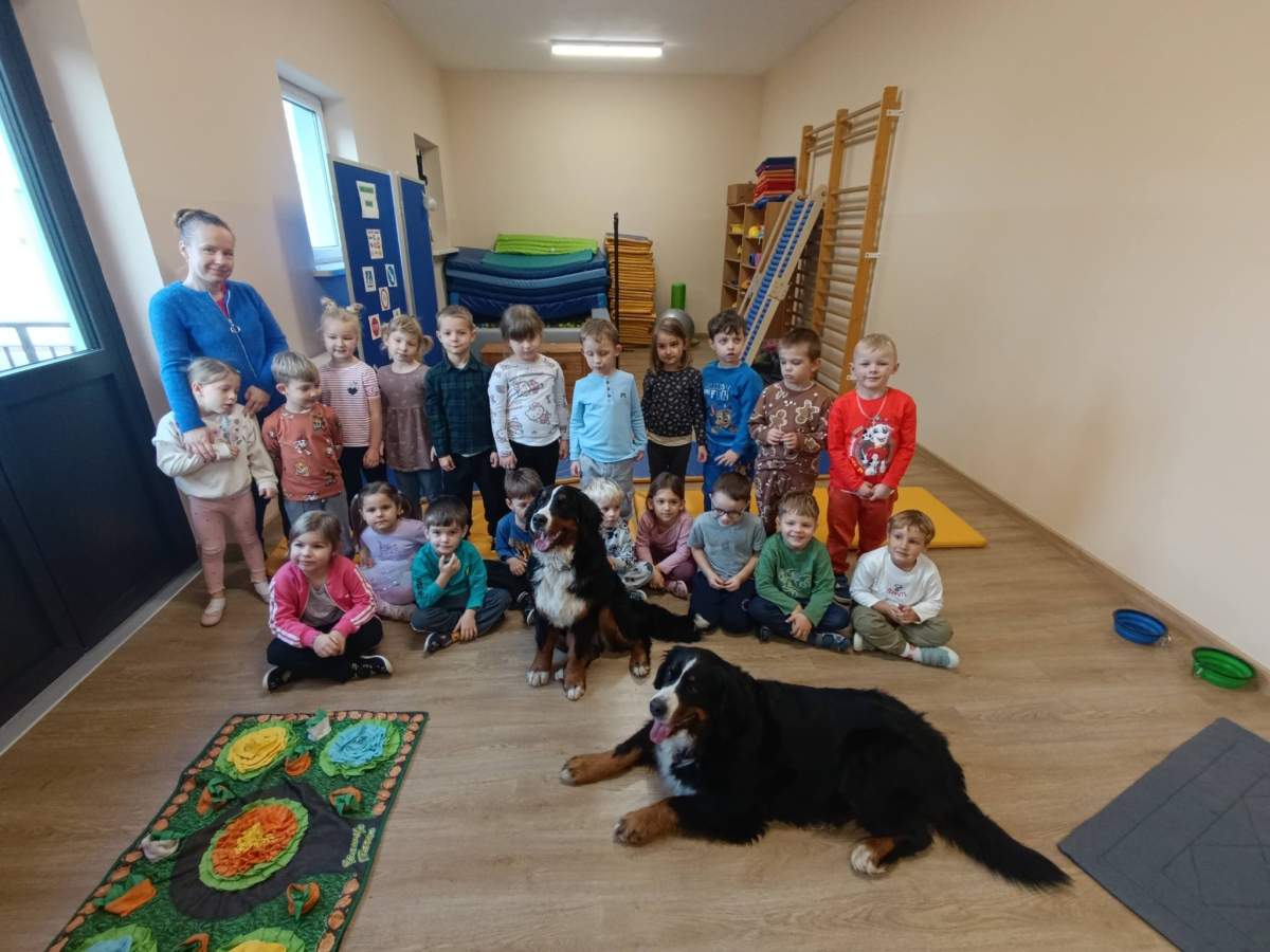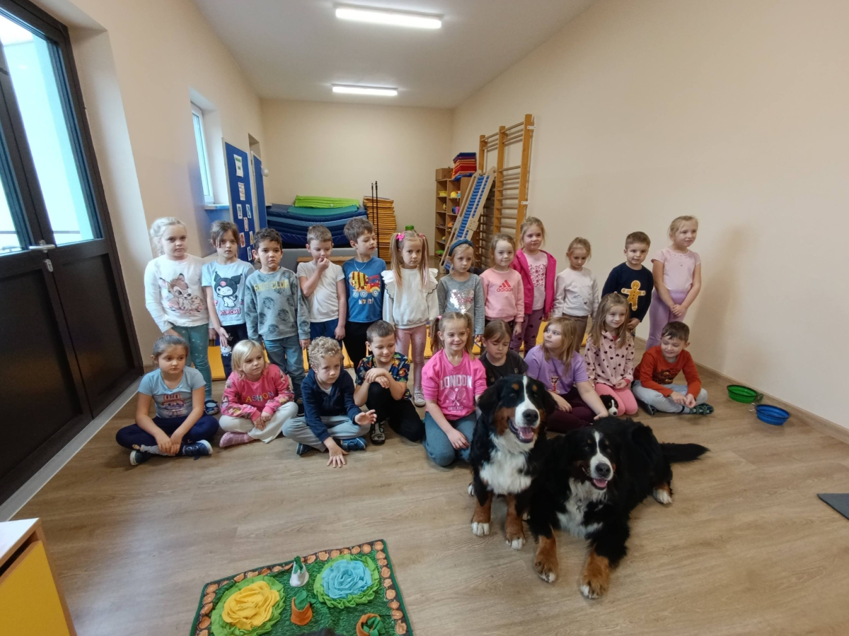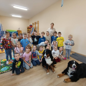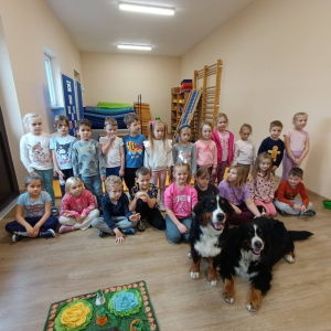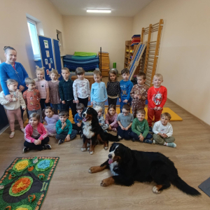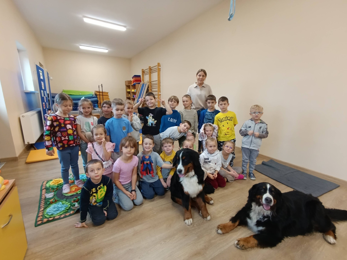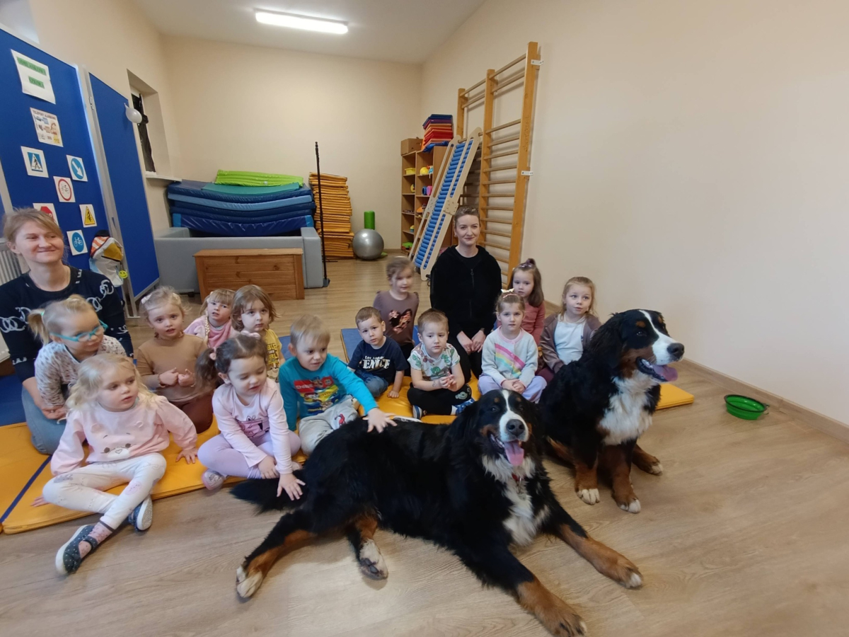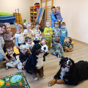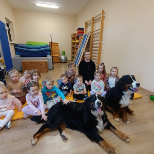 W naszym przedszkolu mieliśmy wyjątkowych gości! W piątek odwiedziły nas dwa urocze psy rasy berneński pies pasterski w ramach zajęć dogoterapii.