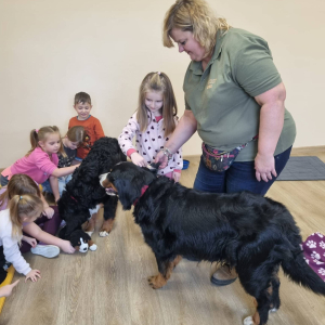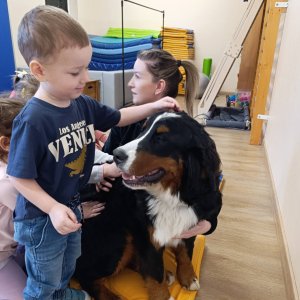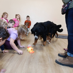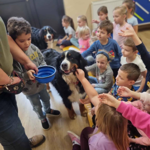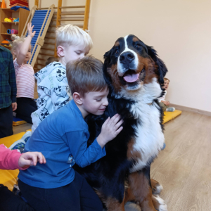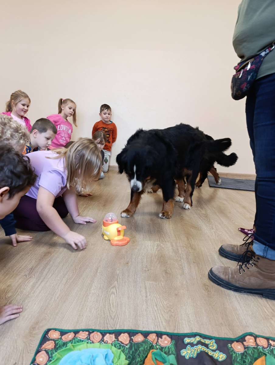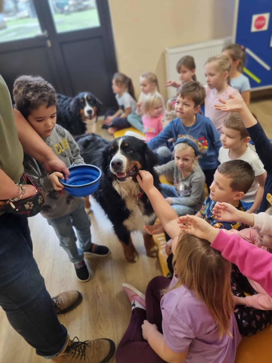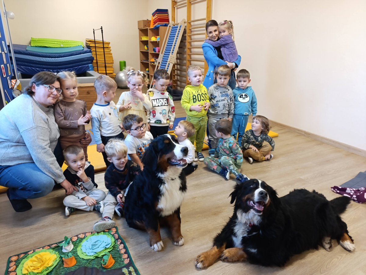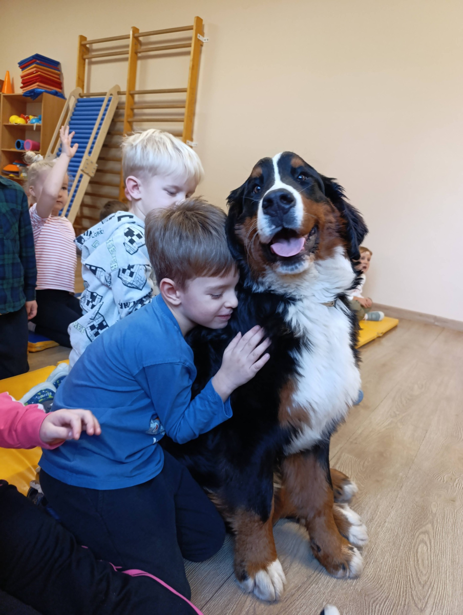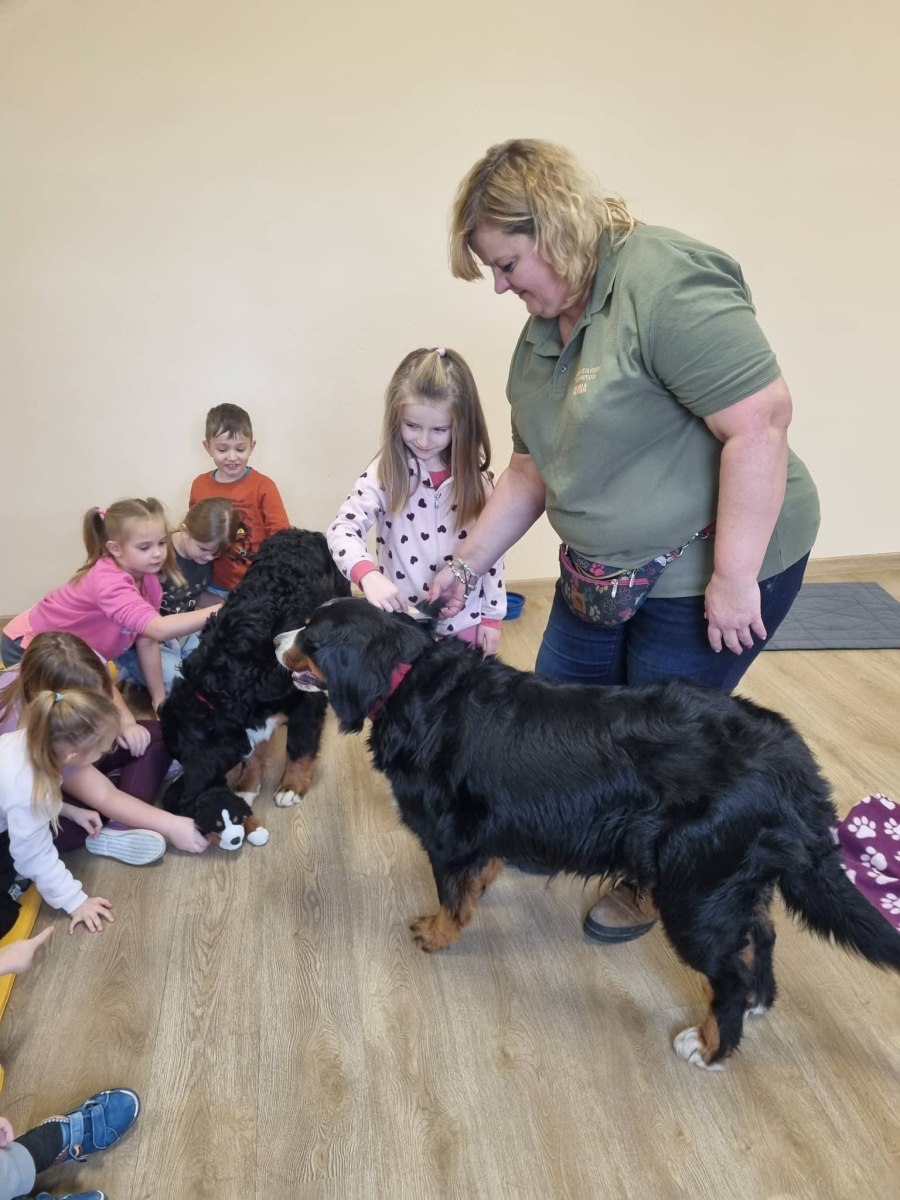 Radości było co niemiara! Dzieci były zachwycone obecnością psich przyjaciół, a oba berneńczyki okazały się niezwykle łagodne, cierpliwe i przyjazne.