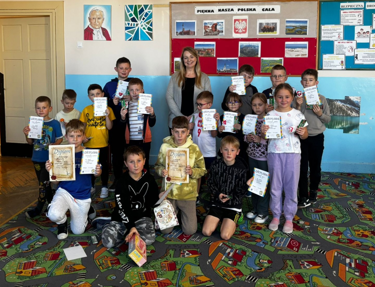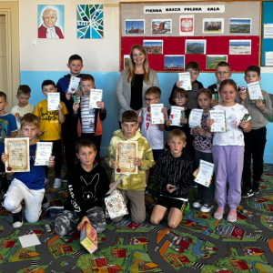Wszystkim uczestnikom konkursu pogratulowała Pani Dyrektor Katarzyna Gurgul i wręczyła pamiątkowe dyplomiki, a zwycięzcom nagrody.