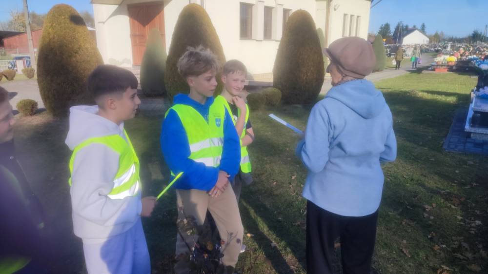 W dniu 23 października uczniowie klasy VII zorganizowali happening popularyzujący noszenie odblasków wśród seniorów. Akcja miała miejsce przed sklepami znajdującymi się w miejscowości Borzęcin. Młodzież edukowała starsze osoby na temat konieczności noszenia odblasków po zmroku oraz wręczała im odblaskowe opaski.