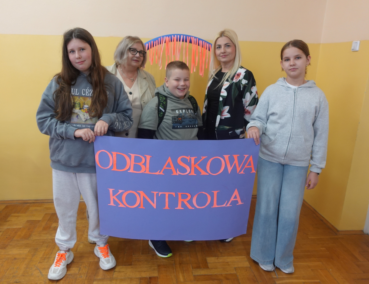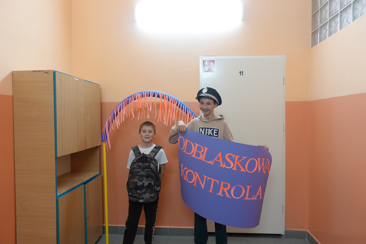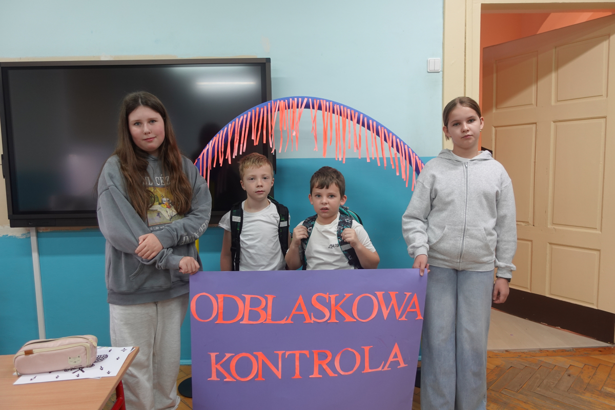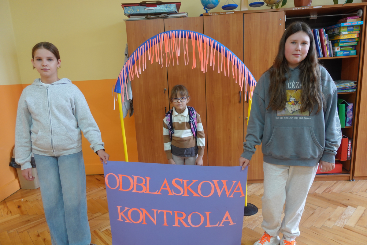 Chcąc sprawdzić, jak uczniowie dbają o swoją widoczność na drodze zorganizowano konkurs „Odblaskowa kontrola". Był to konkurs dwuetapowy. Miał on za zadanie zmobilizować uczniów do noszenia odblasków. Kontrolerzy odwiedzili poszczególne klasy, przypominając o potrzebie noszenie odblasków i informując o zasadach konkursu. Liczenie odblasków przy plecakach wyłoniło klasowych liderów, którzy mogli się sfotografować w kontrolnej bramce. Liderami I etapu zostali: