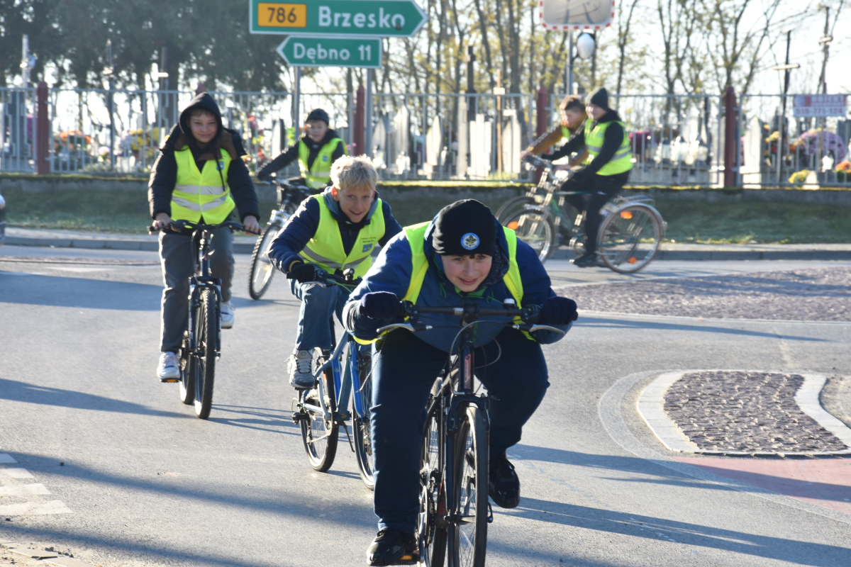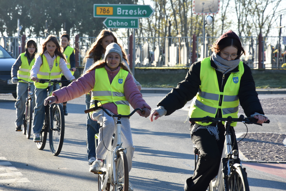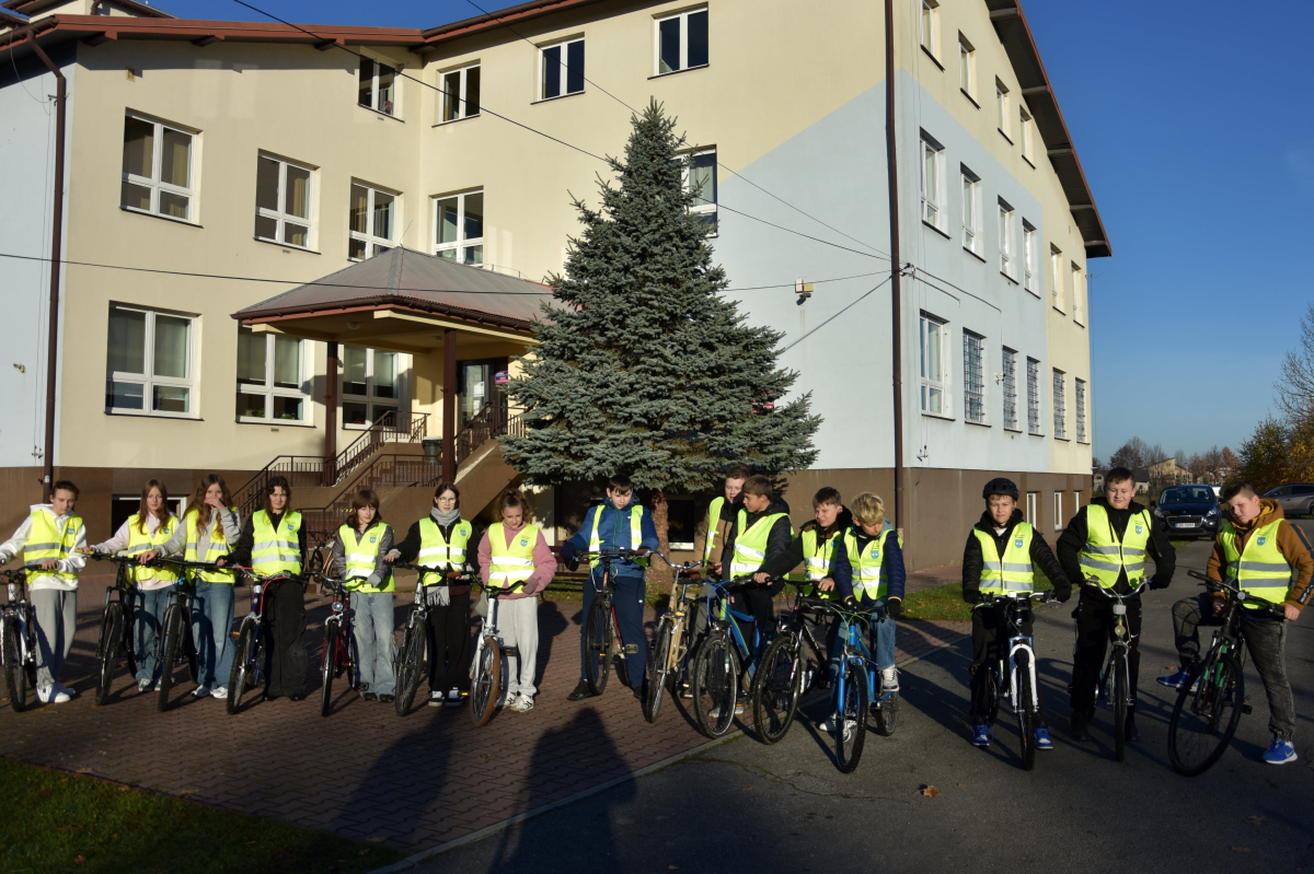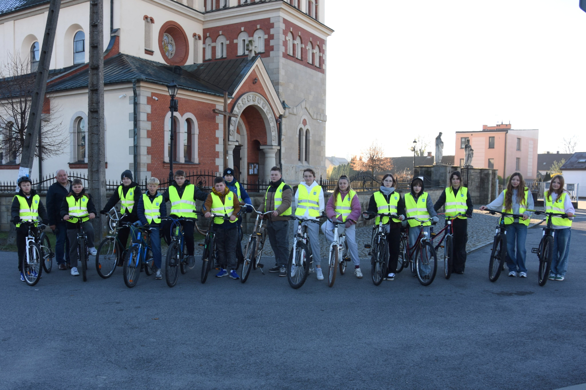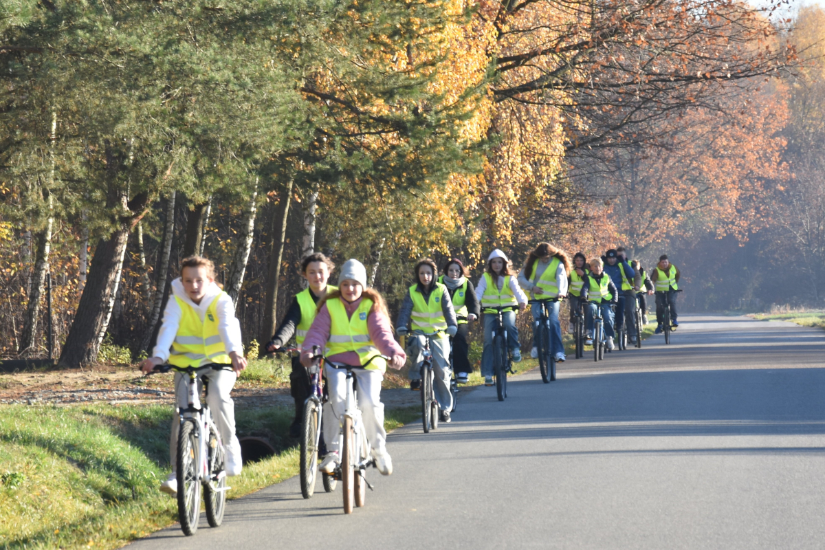 W środę 5 listopada 2025 r. 15 uczniów i uczennic z klasy 7b uczestniczyło w wyciecze rowerowej w Borzęcinie. Warunkiem uczestnictwa był: sprawny technicznie rower, kamizelka odblaskowa oraz dobry humor. Jadąc drogami naszej miejscowości przestrzegaliśmy zasad ruchu drogowego, sygnalizowaliśmy zmianę kierunku na skrzyżowaniach równorzędnych, rondzie oraz drodze podporządkowanej. Zwracano również uwagę na tempo jazdy oraz jej kulturę. Udział w akcji „Odblaskowa Szkoła” powinien wdrożyć do sysytematycznego używania kamizelek jak i innych odblaskowych gadżetów, a tym samym poprawić bezpieczeństwo dzieci i młodzieży na drogach naszej gminy.